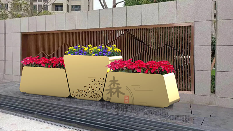 金色不銹鋼組合景觀花箱