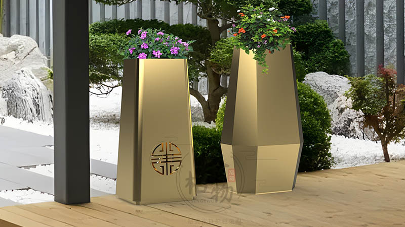 戶外不銹鋼花缽 不銹鋼花箱拉絲鍍金